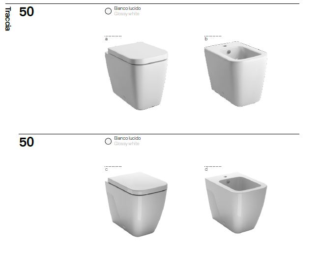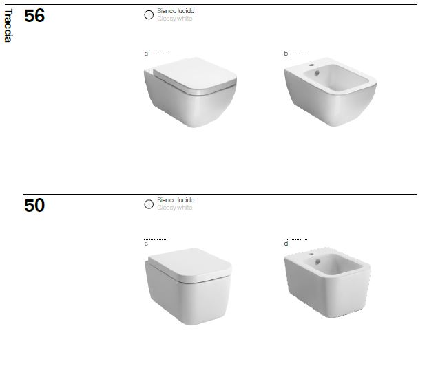 Con Traccia l’azienda GSI disegna per i suoi sanitari un sedile wc rettangolare con due tipi di angoli. Nella frontale verso l’utilizzatore troviamo angoli stondati, nella parte posteriore verso in muro invece due angoli netti a 90°. Un rettangolo dalle dimensioni 44×35. L’azienda propose sia la versione a terra. tra l’altro in due varianti, e la versione sospesa. Per questo sanitario sono disponibili nello store Sintesibagno i copriwater sia nella versione COME L’ORIGINALE, sia nella versione dedicata (con cerniere standard e con cerniere soft-close) e li trovate tutti al seguente LINK [ CLIC QUI ]